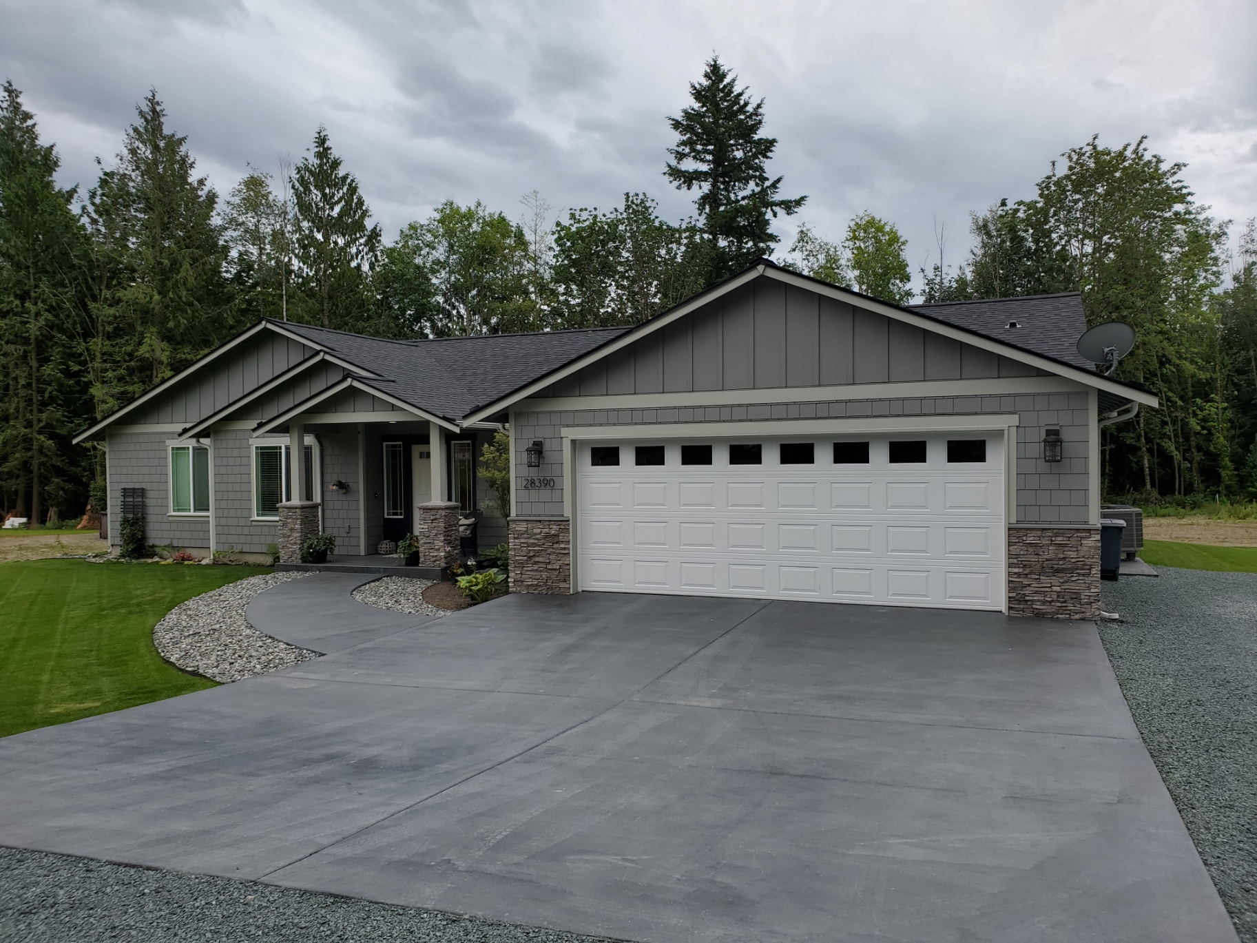 Our Samish River is a smaller variation of the Samish Lake. It has a large master suite, 2 other bedrooms and an office. Enclosed utility room and covered back porch roof area. It has very pleasing curb appeal.